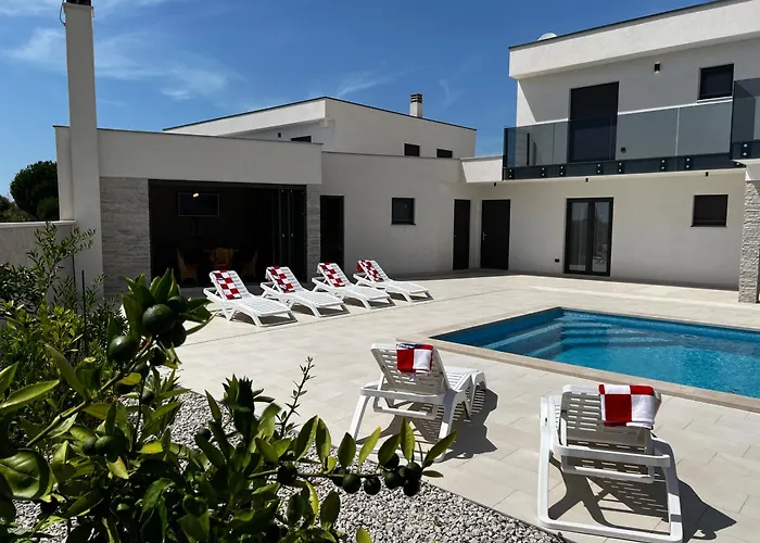 Villa Mare - Modern Villa With Swimming Pool And Jacuzzi Pula располагается в 2 км от Триумфальной арки "Сергиев" и предлагает личный бассейн с джакузи и гидромассажной ванной. Вилла с видом на сад приглашает гостей посетить Амфитеатр Пулы, в 25 минутах ходьбы.